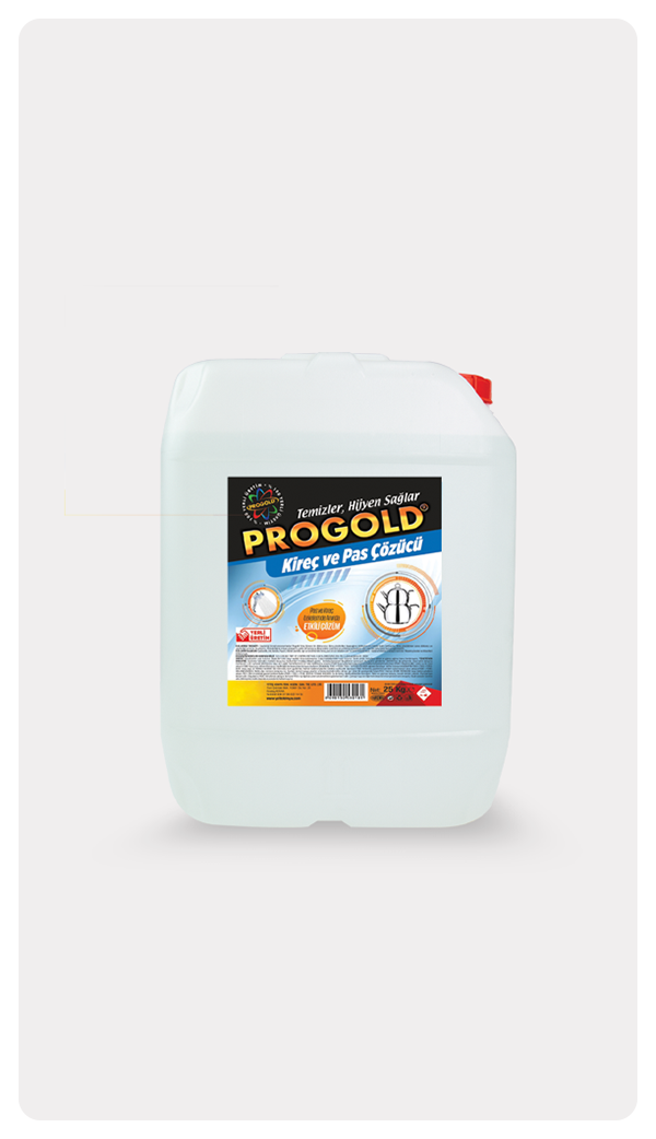 * EKİPMAN TEMİZLİĞİ: Kireç birikimi olan makineler, ısıtıcılar, benmari ve çaydanlık vs. gibi suyun ısıtıldığı ekipmanların içine sıcak su alınıp her litre için yarım çay bardağı PROGOLD KİREÇ ÇÖZÜCÜ katılır ve bekletilir. Sık sık kireç tabakasının çözülüp çözülmediği kontrol edilir. Çözünmüş ise kaptaki asitli su dökülebilir veya tekrar kullanılmak üzere saklanabilir. Kireç tabakası kalın ise kullanılan PROGOLD KİREÇ ÇÖZÜCÜ miktarı artırılabilir.
