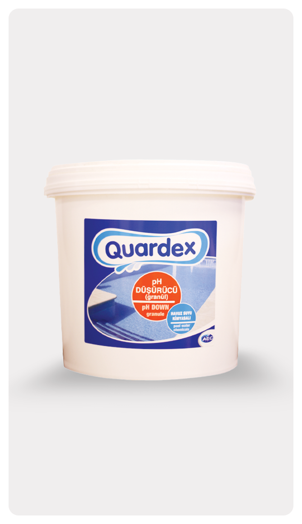 UYGULAMA DOZAJ pH düşürücü granül önce 1/10 oranında eritilerek dozaj tankına doldurulur. Dozlama cihazı ile filtrasyon sisteminden önce kullanılmalıdır. Otomatik ölçüm cihazları varsa, sistem kendisi otomatik pH ölçümü yaparak ihtiyaç halinde yeteri kadar dozlama yapar. Direk uygulamada ise pH 0,1 birim düşürmek için yumuşak sularda 0,5 kg , sert sularda ise 1 kg kullanılmalıdır. Kullanılacak miktar tespit edildikten sonra, plastik bir kapta eritilerek denge deposundan, skimerli havuzlarda ise skimerden uygulanmalıdır.