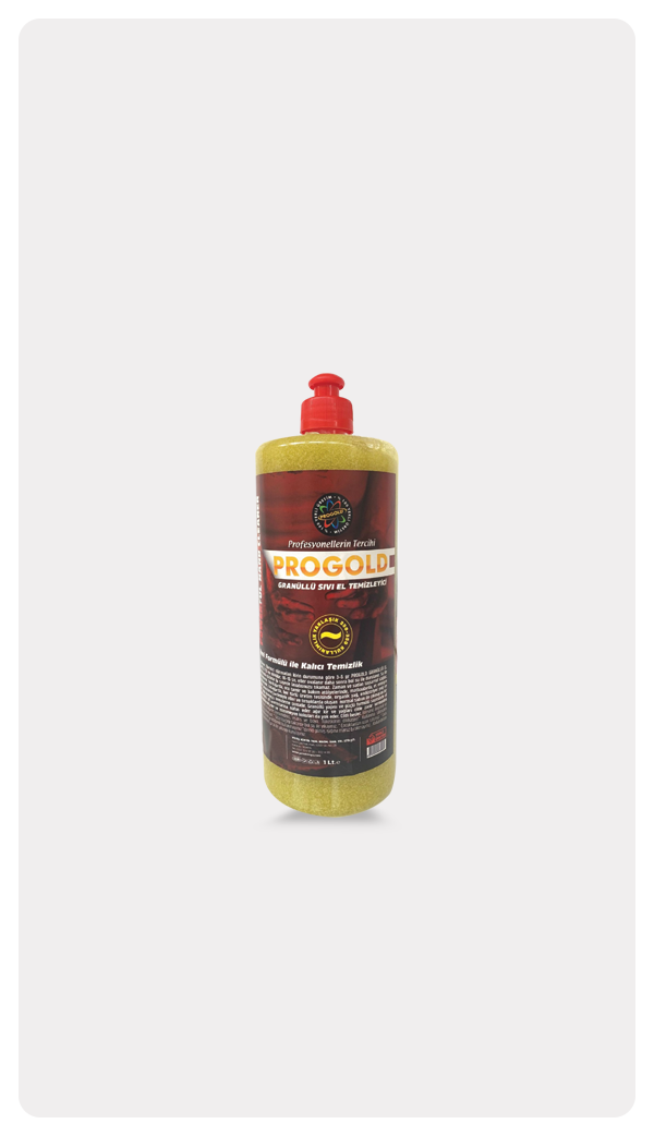 Yeni Formülü ile Kalıcı Temizlik Atölyelerde, fabrikalarda, oto tamir ve bakım atölyelerinde, matbaalarda, et entegre tesislerinde, kasaplarda, her türlü üretim tesisinde, organik yağ, endüstriyel yağ ve ağır sanayi kirleri nedeniyle eller ve tırnaklarda oluşan normal sabun ile çıkmayan kir ve yağı çıkaran el temizleme sıvısıdır. Kullanım: Ellerinizi ıslatmadan kirin durumuna göre 3-5 gr PROGOLD GRANÜLLÜ EL TEMİZLEYİCİ ele dökülür. 10-15 sn. eller ovalanır daha sonra bol su ile durulanır. Su ile temasında çözünür bu sayede lavabonuzu tıkamaz. Zaman ve sudan tassarruf sağlar. Granüllü yapısı ve güçlü formülü sayesinde el üzerindeki cilt kıvrımlarına nüfus eder ağır kir ve yağları cilde zarar vermeden kolaylıkla temizler ve istenmeyen kokuları da yok eder. Cildi besler.
