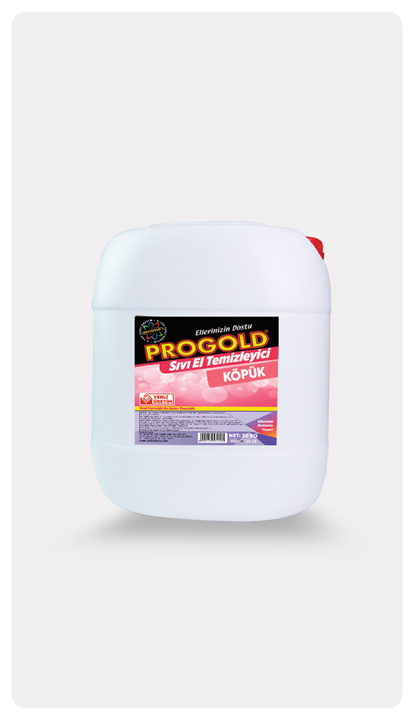* Kirlenmiş elin içine 1-2 damla PROGOLD damlatılır ve avuç içinde iyice yayılır ve su yardımıyla köpürtülür ve kirli yüzey temizlendikten sonra iyice durulanır.